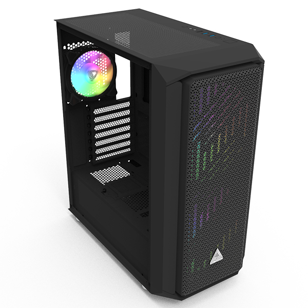 Specifications:Product NameAir XAvailable ColorBlackDimensions (LxWxH)/N.W/G.W425*210*475mm/7.26 kg/8.13 kgMotherboard SupportE-ATX (Up to 305mm × 330 mm);/ATX/Micro ATX/Mini ITXExpansion Slots7Drive Bays5.25″02.5″SSD23.5″HDD or 2.5″SSD2I/O PortUSB2.0*1, USB3.0*2, Audio*1, mic*1, LED ButtonPre-installed Fan(s)Front200mm*2 (ARGB Fan)Rear120mm*1 (ARGB Fan)Fan SupportFront120mm*3/140mm*3/200mm*2Rear120mm*1Top120 / 140mm*2Radiator SupportFront120 / 240 / 360 / 140 / 280mmRear120mmTop120 / 240 / 140mmClearanceVGA340mmCPU Cooler163mmDust FiltersTop, BottomPower Supply SupportBottom mount, ATXLighting supportARGB Lighting Controller x 1Warranty1 YearNoteFeatures, Price and Specifications are subject to change without notice. Images are used for representation purpose only
